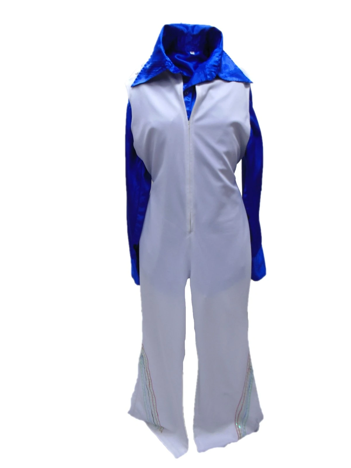 - Jumpsuit – white v-neck, zip front w/flared, sequin trim legs