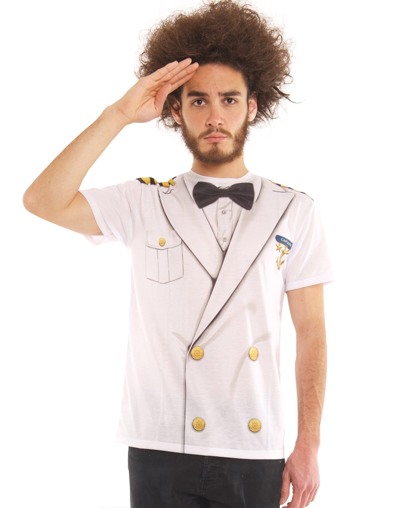 This Faux Real print Captain T-Shirt has a double breasted jacket print with printed epaulettes, print bow tie & even print medals!