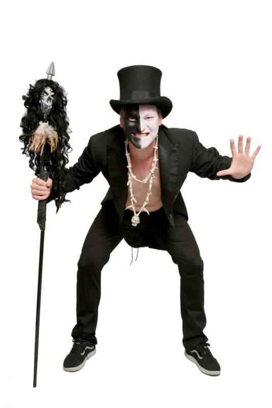 Baron Samedi – a visually impressive James Bond 007 villain from them movie “Live & Let Die” – unfortunately met the very untimely end he had intended for Bond: death in a coffin full of poisonous snakes (sorry for ruining the plot for you, guys!) You’ll score major bonus points for originality amongst a sea of tuxedos if you opt for this one for your next Bond- themed event.
