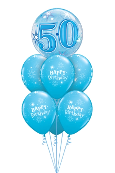 - Blue Sparkle Bubble – 56cm – also available in pink Happy Birthday print plus ages 16 – 21 – 30 – 40 – 50 – 60 in blue & pink
