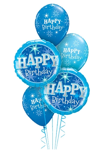 - Dark & Light Blue Birthday Sparkle print latex balloons x 3 – 28cm ea