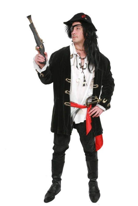 Ahoy me hearties! We have x2 of these long sleeve, handmade black velvet pirate coats instore, to mix & match with other pirate costume elements. Come in & allow us to style you up!