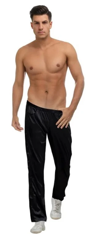 Our black stretch fabric Stripper Pants are cleverly designs with rectangular magnets running down the outside seam of each leg. When the time is right, simply grab around the groin area… & PULL (there really is no way to put that delicately). VOILLA!