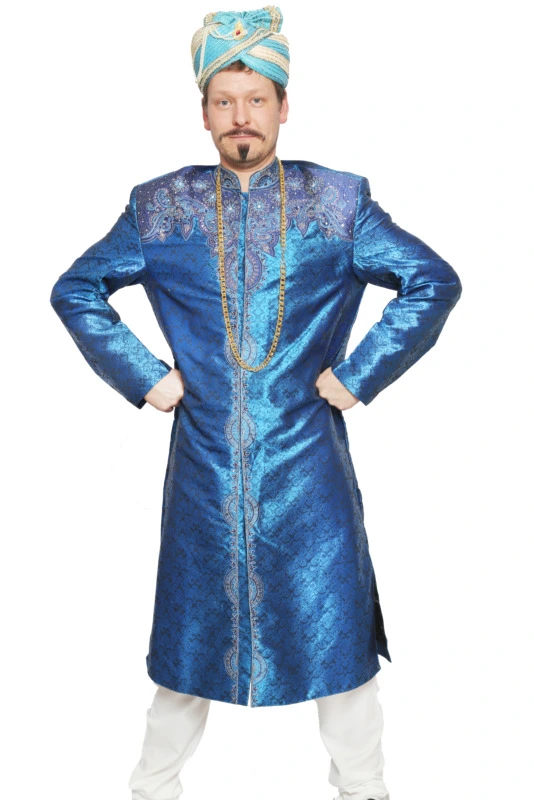A regal Bollywood ensemble purchased from the streets of Little India in heritage Georgetown, Malaysia. Complete your look with a manly moustache, available to purchase.