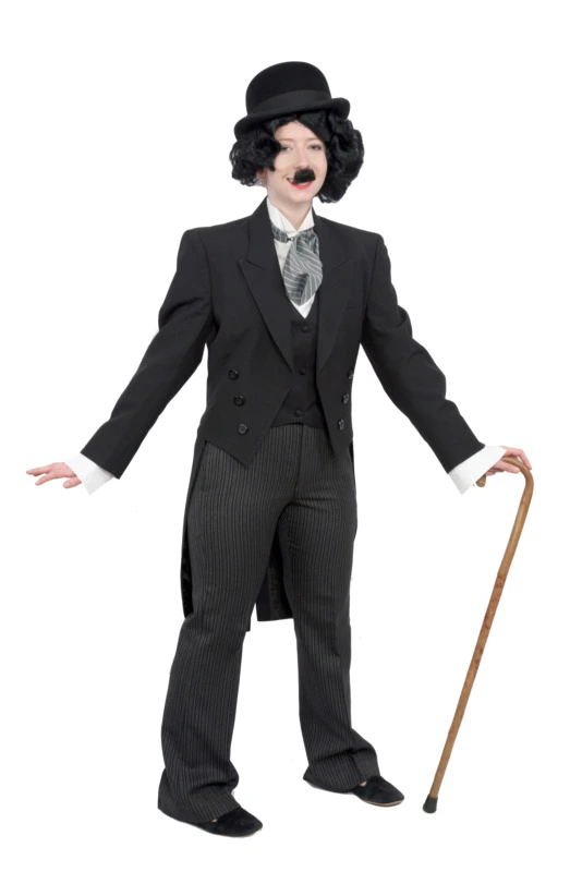 - Go for a size slightly larger than you are & put it all together in a slightly dishevilled fashion – remember, he wa the Little Tramp! Don’t tie your cravat or tuck your shirt too neatly