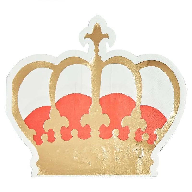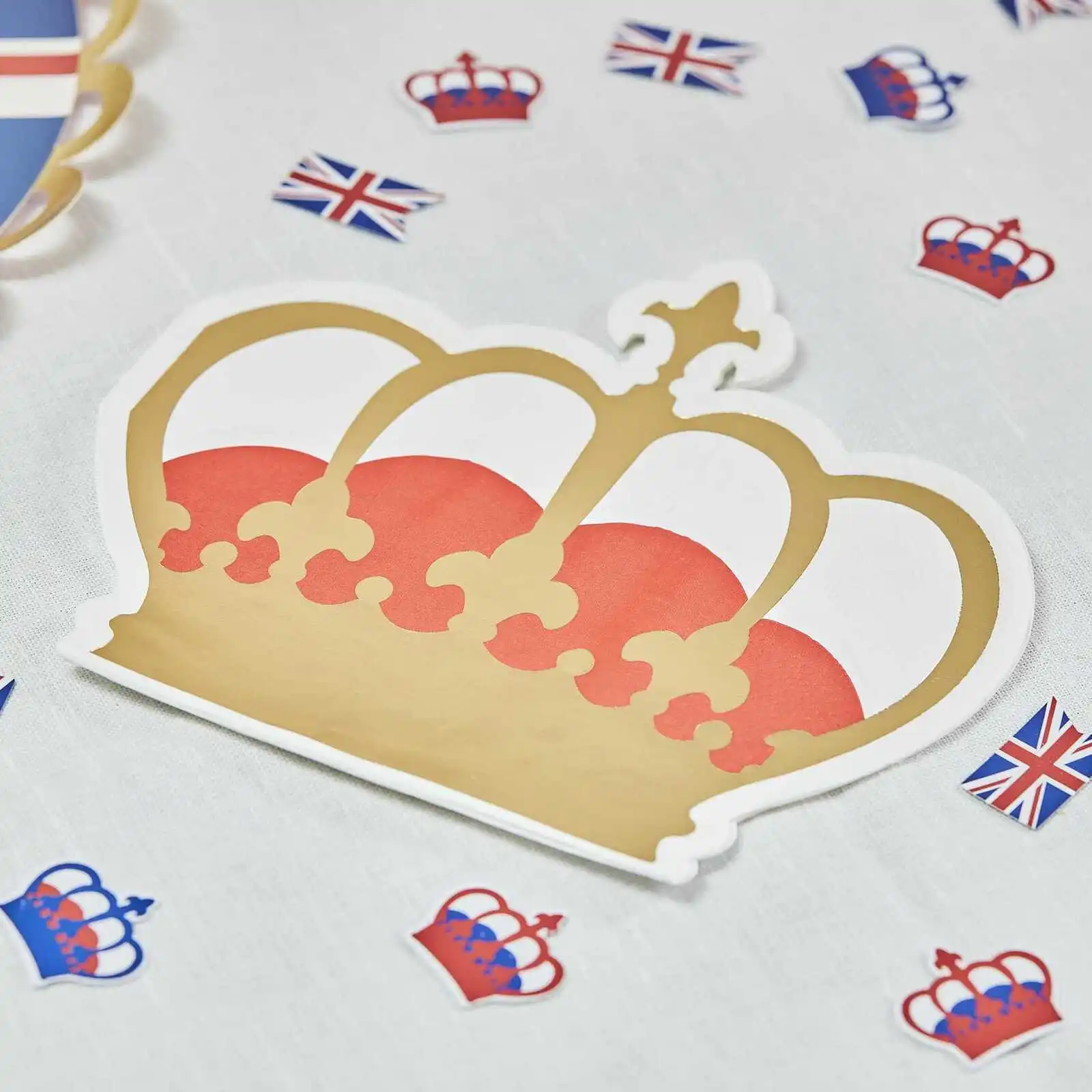 What better to dab the crumbs of your scones & cream from the corners of your mouth than with these decorative King’s Coronation Party Gold Crown Napkins? Crown shaped paper napkins measuring 16.5cm x 16.5cm when folded. Available in packs of 16.