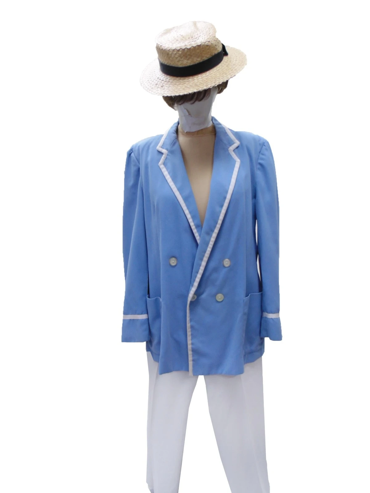 - Jacket – duck egg blue, double breasted w/white trim – Chest size 42