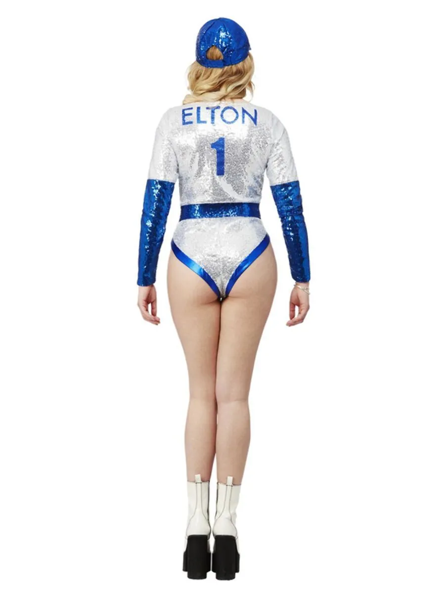 The bitch is back, baby! Salute Elton John in this fabulous sequin cap & L.A. Dodgers bodysuit, modelled after the onstage costume he wore whilst performing sell out concerts at the famed Dodgers Stadium in 1975.
