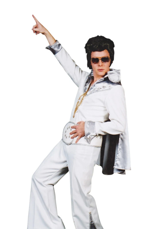 A quality, handmade Elvis suit – fit for a King! Consider picking up a love rug with your costume (fake chest hair) for a hirsute helping hand.