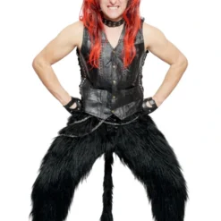 - Pants (size adjustable) – – black faux fur w/attached tail