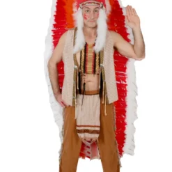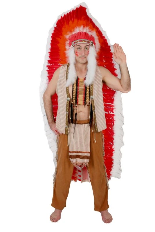 An impressive & surprisingly easy to wear costume! Great value, too. The long headpiece alone can cost up to $170 to purchase. Handmade vest & pants with lap-lap.