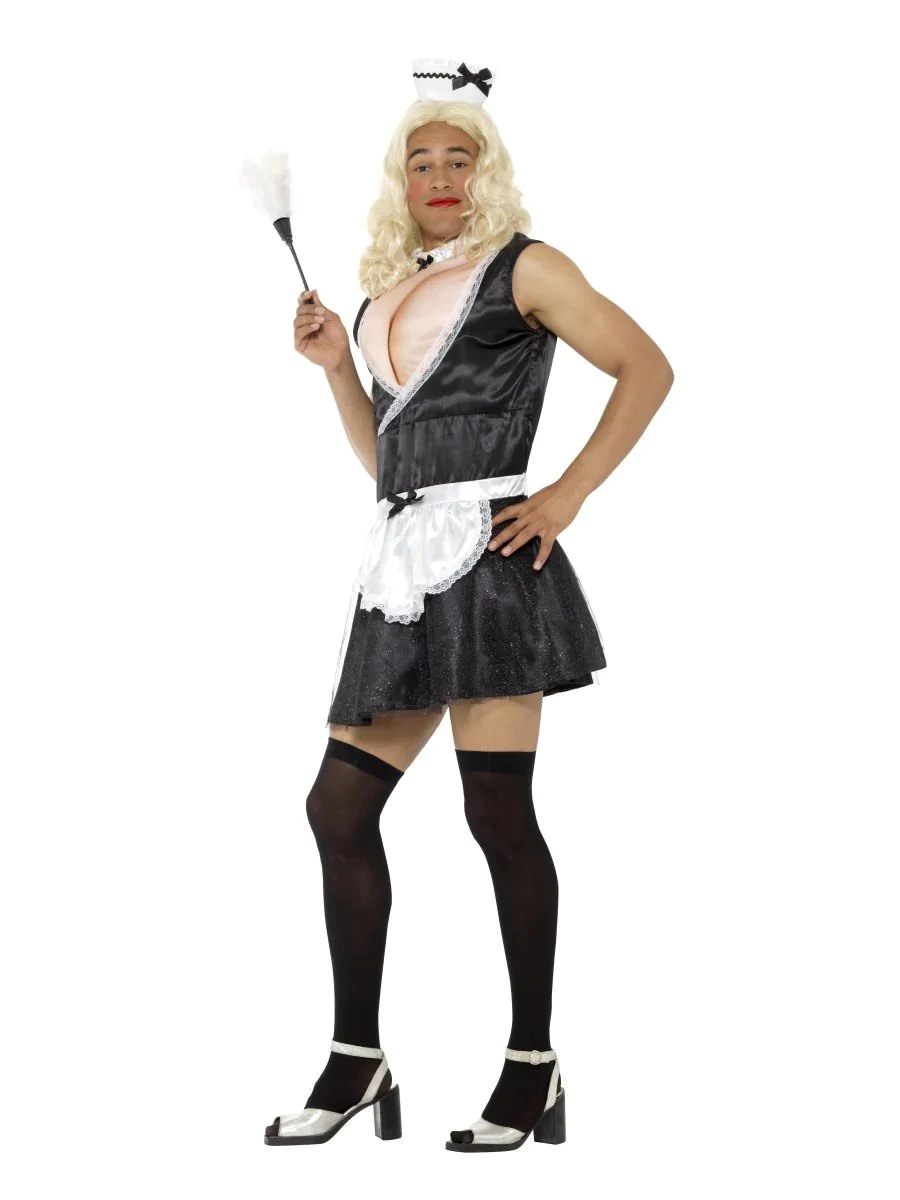 This Novelty French Maid costume contains everything you need to do an absolute number on the Buck, all the way down to the stockings & feather duster!