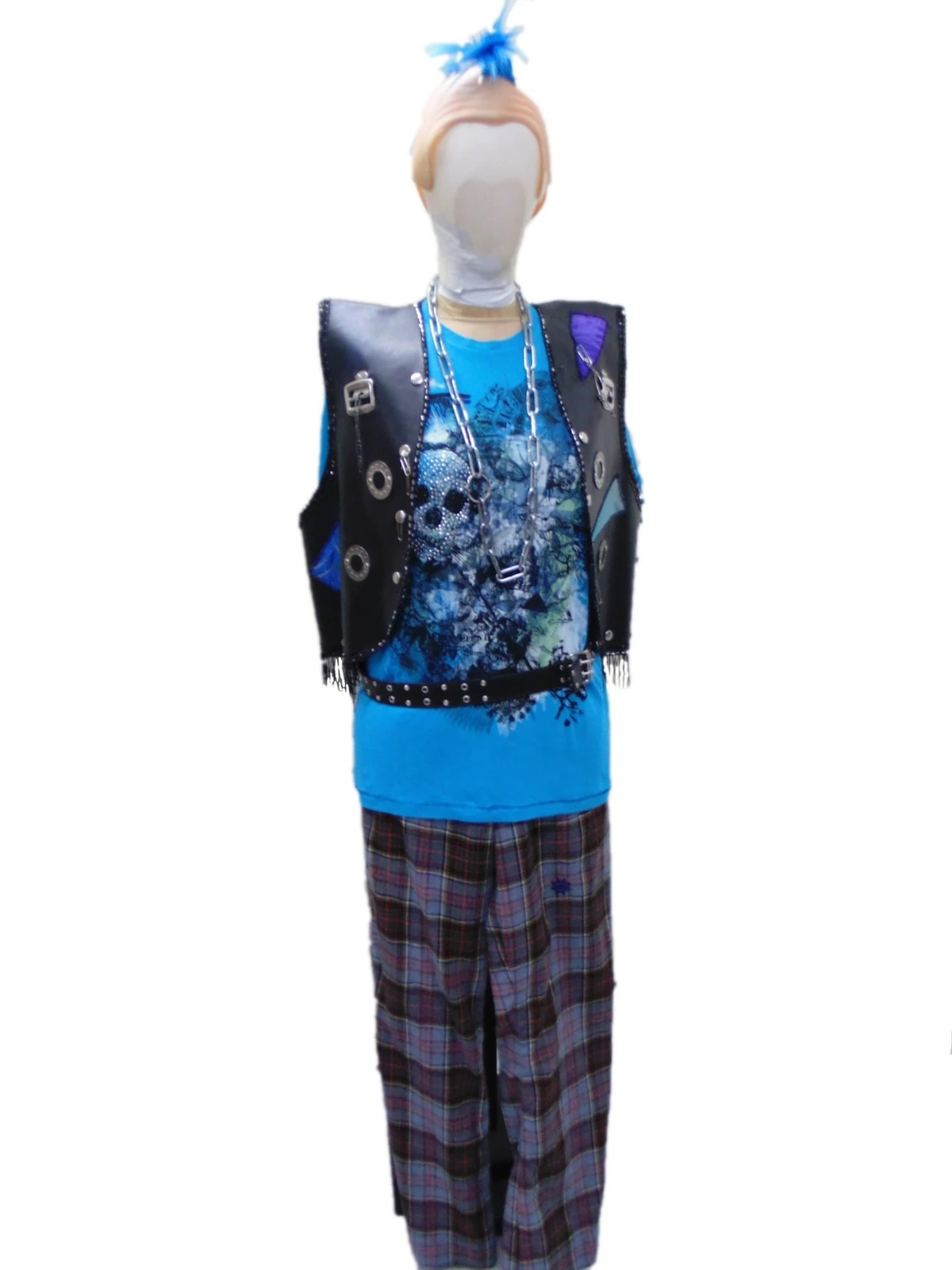 - Vest – black vinyl w/fringing, patches, stud & buckle detailing