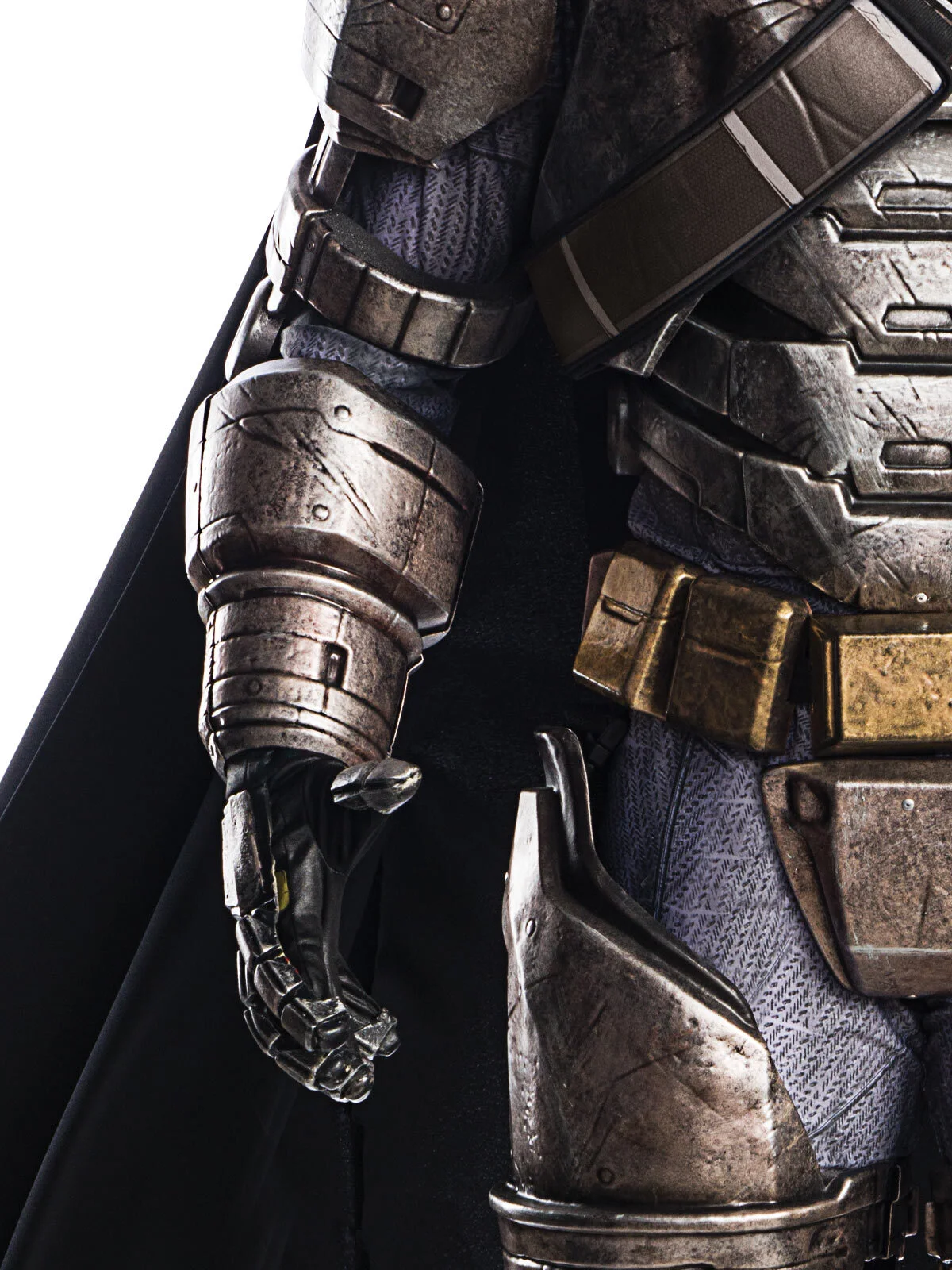 - Cape – black with scalloped hemline, attaches to shoulder armour via heavy duty clasps