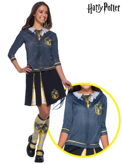 - Top – digitally printed with cardigan, cuff details, buttons, shirt, tie & house emblem