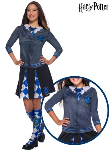 - Top – digitally printed with cardigan, cuff details, buttons, shirt, tie & house emblem
