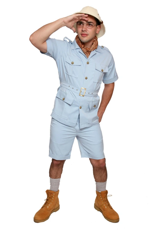 Perfect for a Jungle party, Nerd / 70s look, or international party, themed up as British in African or India. You wont’ find anything like our hire safari suits to buy anywhere, including all accessories, for this price (actually – this comment pretty much applies right across our business!)