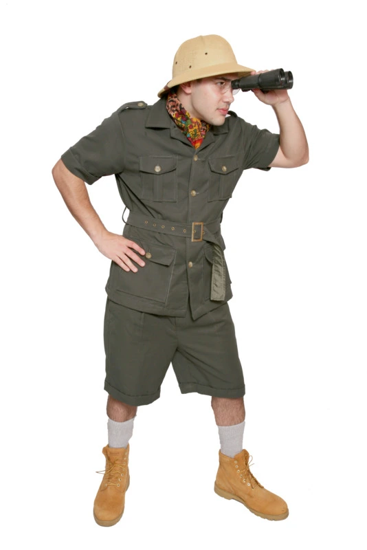 Perfect for a Jungle party, Nerd / 70s look, or international party, themed up as British in African or India. You wont’ find anything like our hire safari suits to buy anywhere, including all accessories, for this price (actually – this comment pretty much applies right across our business!)