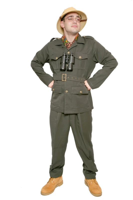 Perfect for a Jungle party, Nerd / 70s look, or international party, themed up as British in African or India. You wont’ find anything like our hire safari suits to buy anywhere, including all accessories, for this price (actually – this comment pretty much applies right across our business!)