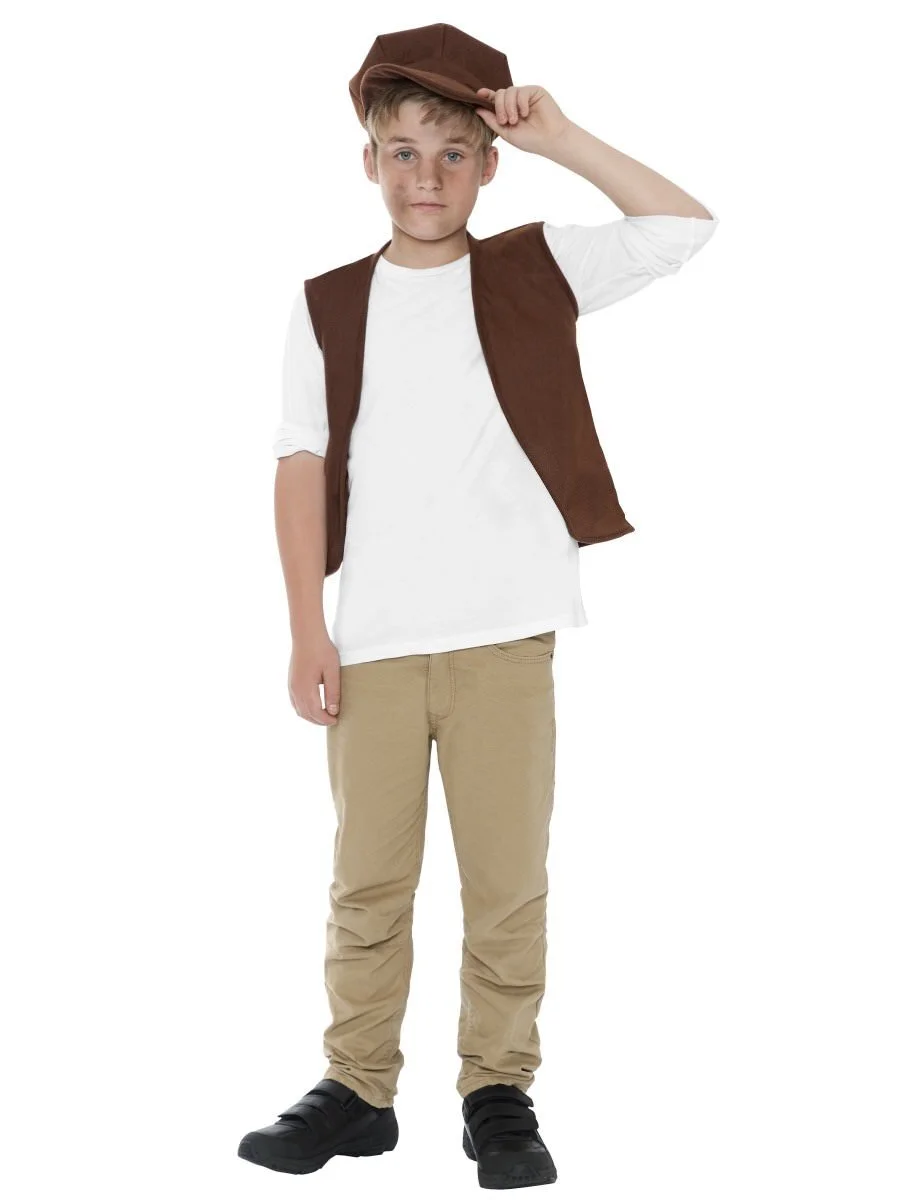Be it street urchin Oliver, a colonial Australian boy or a Peaky Blinders ruffian – this cap & vest kit has got them covered.