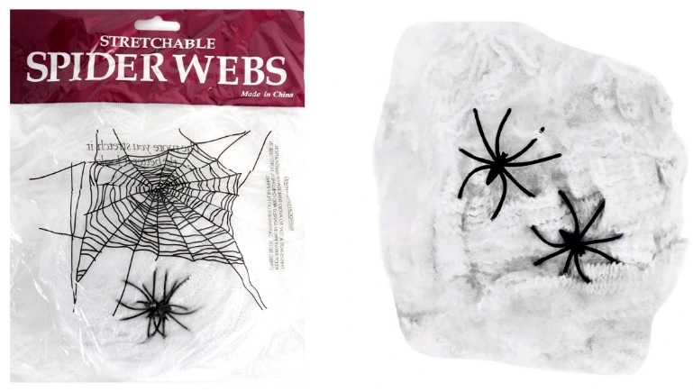 A Jumbo stretchy spider web with two bonus spiders. An absolute must-have for setting the spooky mood this Halloween.