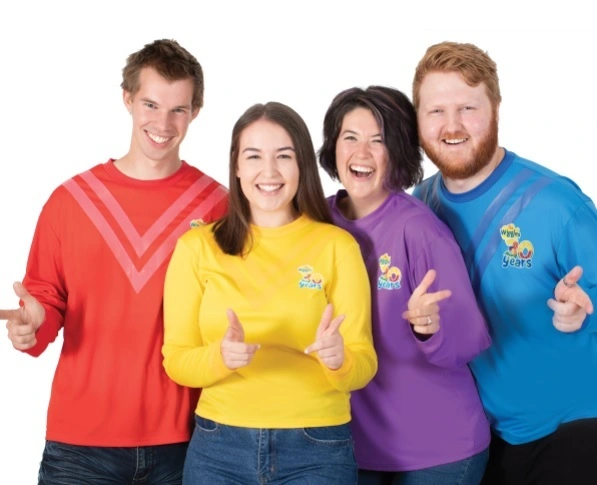 - Shirt -long sleeved polyester skivvy with collar and two iconic V stripes at chest. Featuring the iconic Wiggles logo on left hand side of chest.