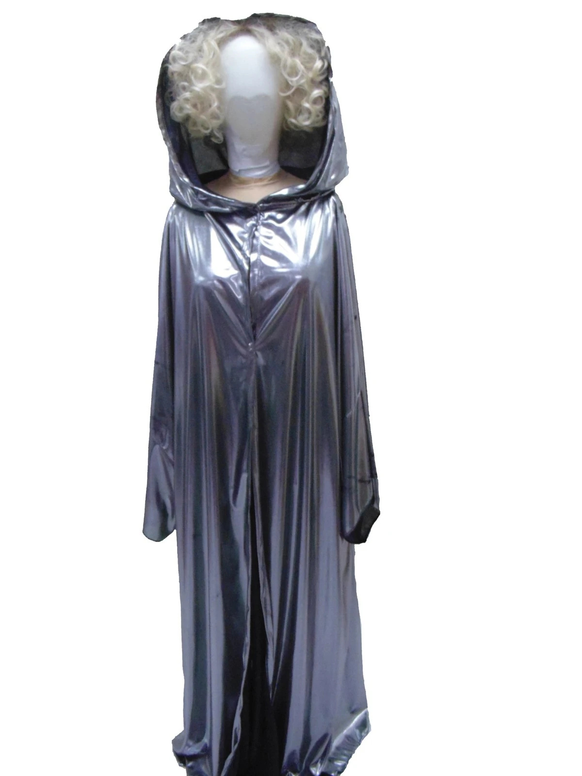 - Cape – silver hood, silver sequin shoulder piece, sparkling silver sleeve trim & a dramatic floor length drop